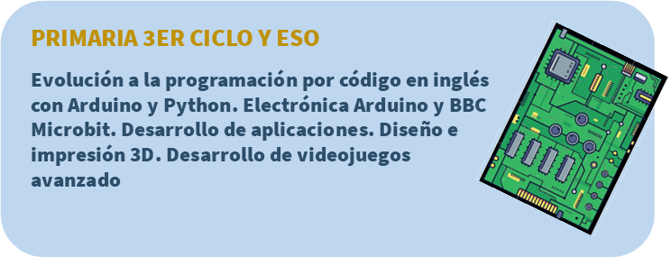 Proponemos una formación centrada en adquirir conocimientos prácticos y aplicables en robótica, desarrollo de videojuegos, diseño e impresión 3D, desarrollo de apps y IA. PROPUESTA POR EDAD PROPUESTA POR ÁREAS DE APREDIZAJE Volver a la navegación principal